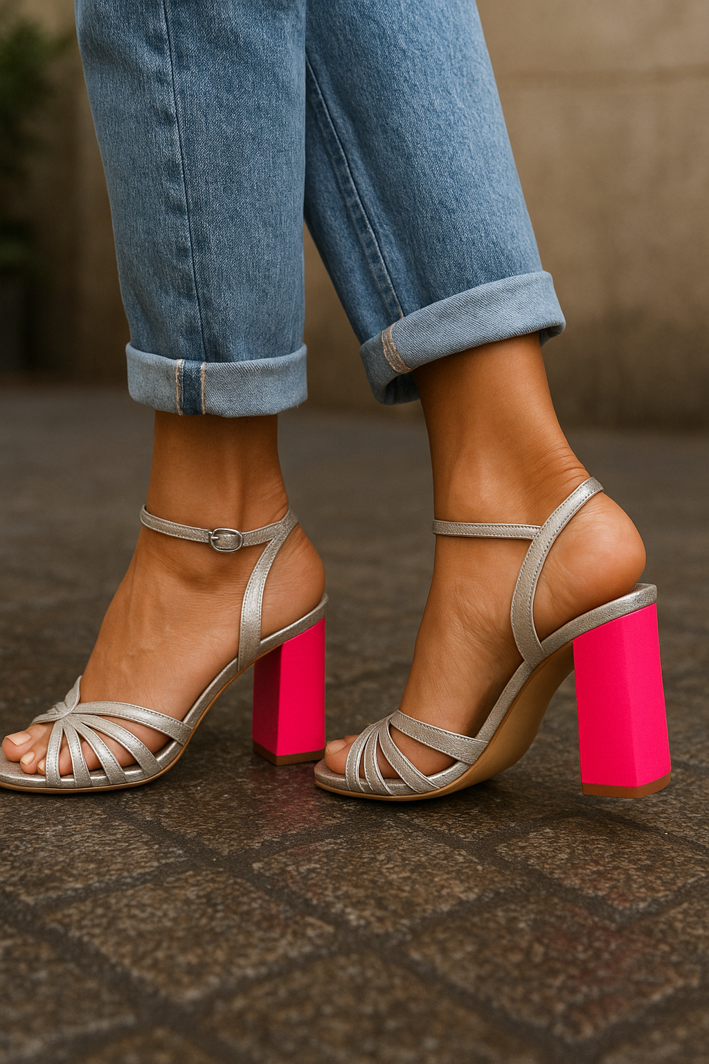 Las sandalias Solara combinan elegancia atrevida, detalles dorados y comodidad estable. Con su tacón grueso y su correa en el tobillo, son perfectas para añadir un toque de glamour a tus outfits, desde la mañana hasta la noche.